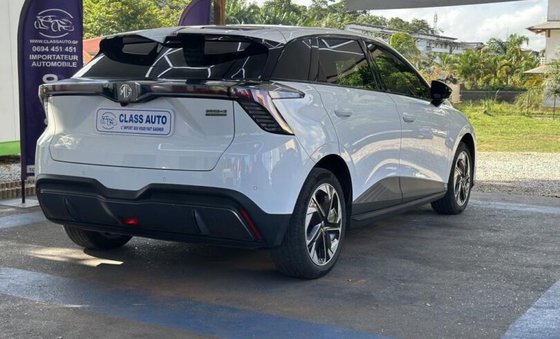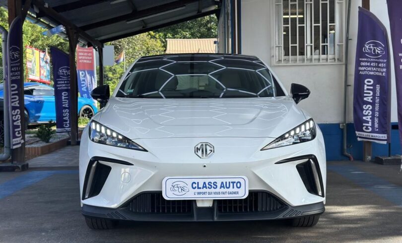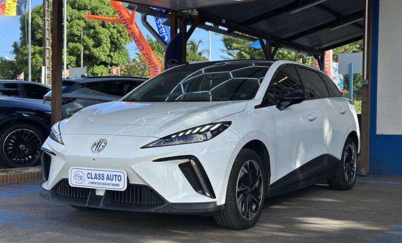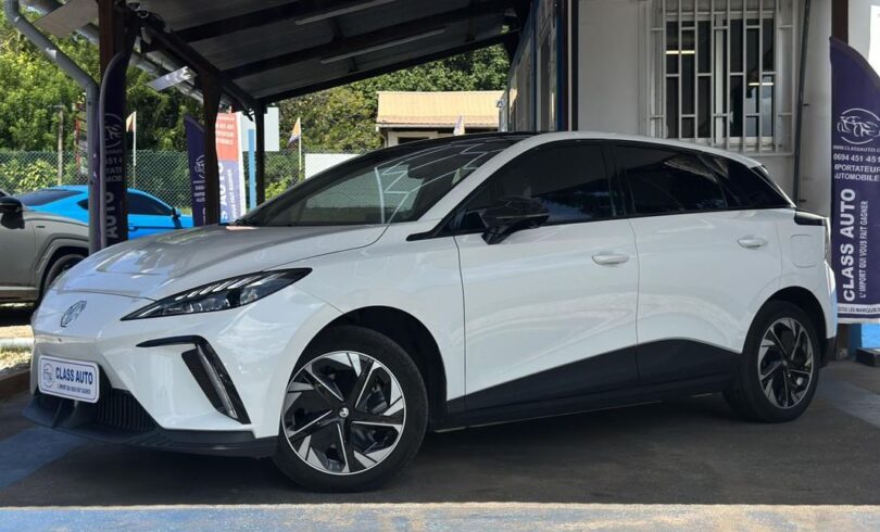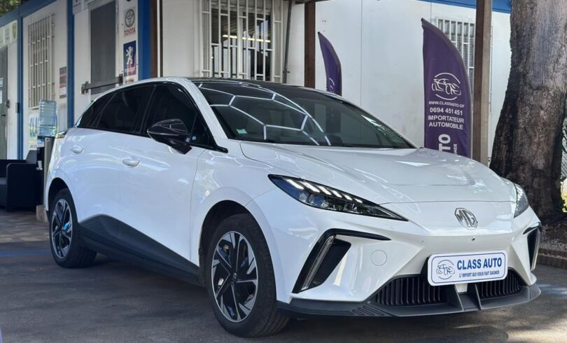MG MOTOR MG4 – 204 – 64-2 KWh Luxury, berline, blanc, 5 cv, 5 portes, première mise en circulation le 08/08/2023, garantie : 7 mois.